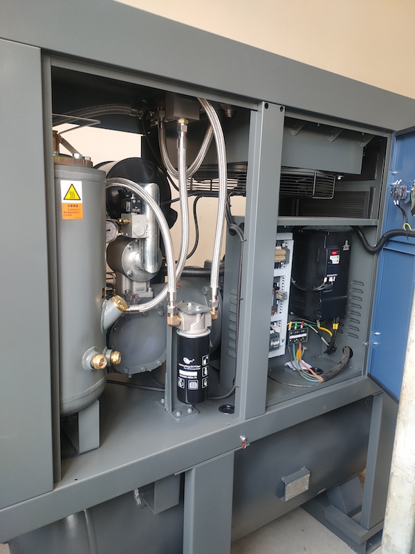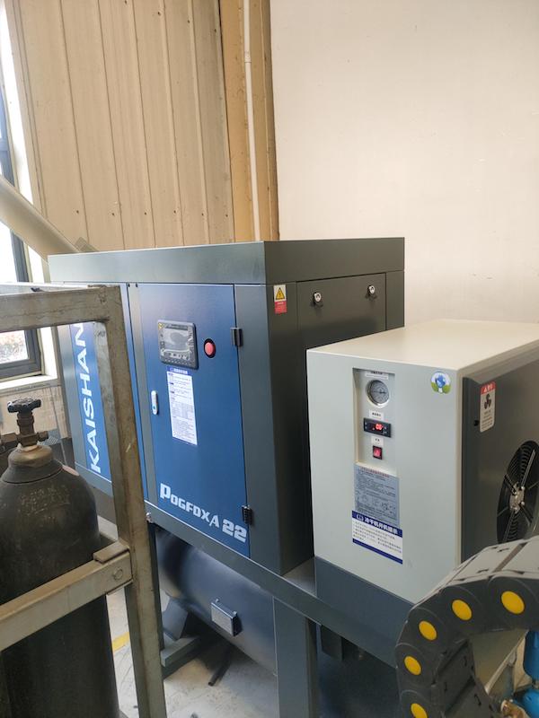 因為(wei)客戶現場車(che)間用氣是8公斤,有單(dān)獨一台變頻(pin)開山空壓機(jī)供氣,考慮到(dao)萬一這🏃台老(lǎo)設🧡備出故障(zhàng)耽誤整個生(sheng)産,所以客戶(hù)在選型上特(te)别選了大一(yi)号💋的,與車間(jiān)管道連接處(chu)配置減壓閥(fa),這樣這台激(ji)光切割螺杆(gǎn)開山空壓機(jī)給✌️激光供氣(qì)同時,也可以(yǐ)兼顧車間的(de)普通用氣,一(yī)舉兩得,客戶(hù)表示滿意。且(qie)表示會把開(kai)山空壓機助(zhù)力🏃節能減排(pai)的📧情況在集(ji)團下面其他(ta)子公司做💃一(yī)個推廣。