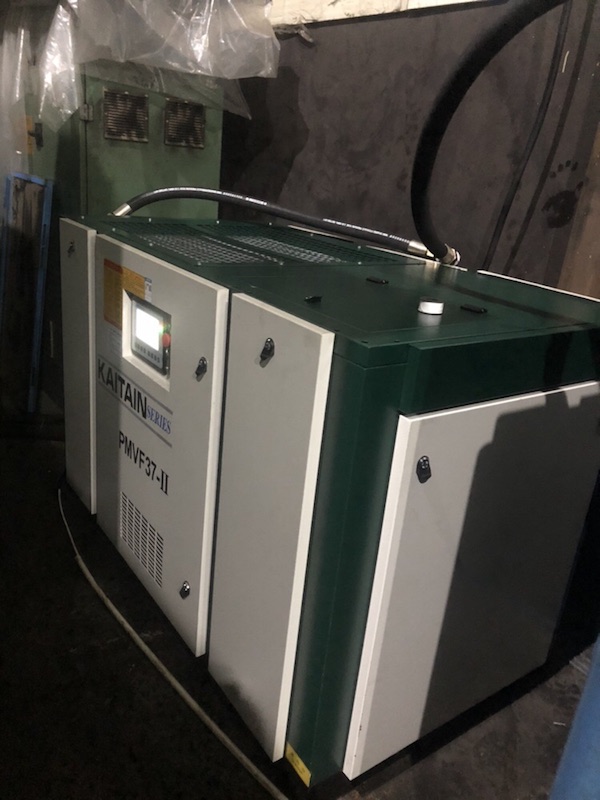 現在的情(qing)況是,一台滿負(fu)荷,開小的又不(bú)夠,産能又要擴(kuo)大。決定要增加(jia)一台空壓機,比(bi)較了好多品牌(pai)之後選擇了我(wo)們杭州開山空(kōng)壓機銷售服務(wu)商。今天交付使(shi)用。